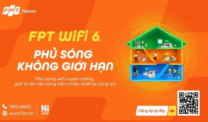 Đăng ký ngay FPT Wi-Fi 6 hôm nay để biến mọi trải nghiệm Internet của bạn trở nên nhanh chóng, mượt mà và an toàn hơn. Với FPT Wi-Fi 6, FPT Telecom tự tin mang lại cho bạn phủ sóng không giới hạn và kết nối siêu vượt trội với wifi thế hệ mới nhất.
