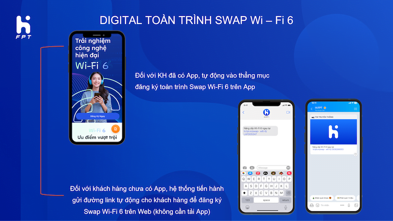 – Chủ động hỗ trợ , nâng cấp Wi-Fi 6: Với ứng dụng Hi FPT, khách hàng có thể tự động đăng ký trên landingpage Wi-Fi 6 và chủ động yêu cầu hỗ trợ nâng cấp ngay trên app.